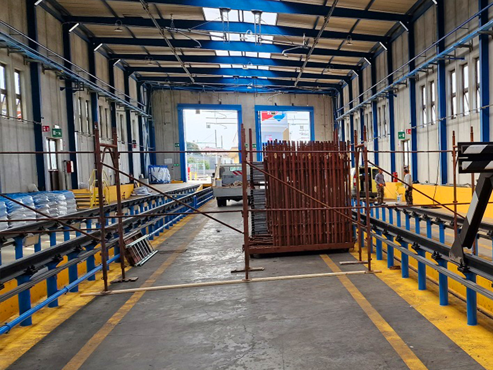 The lathe was built by Meccanotecnica in San Daniele del Friuli, with internal design and customization according to our requirements. Construction of the new pit lathe building began in November, culminating in the installation of the block and assembly of components. The activities lasted for approximately 60 days, and currently, electrical and network connections are in progress.